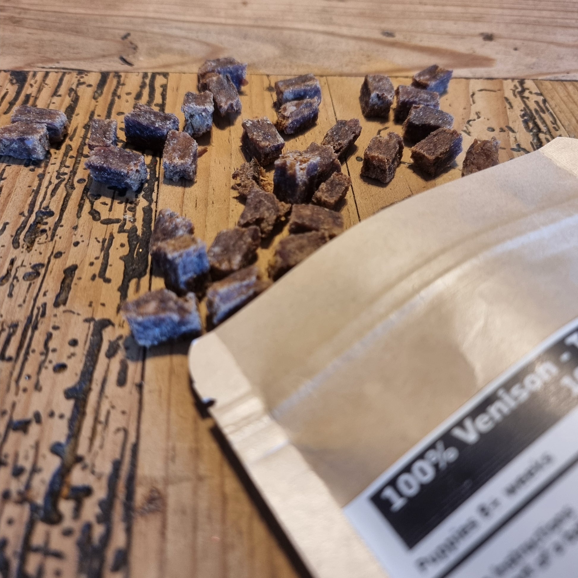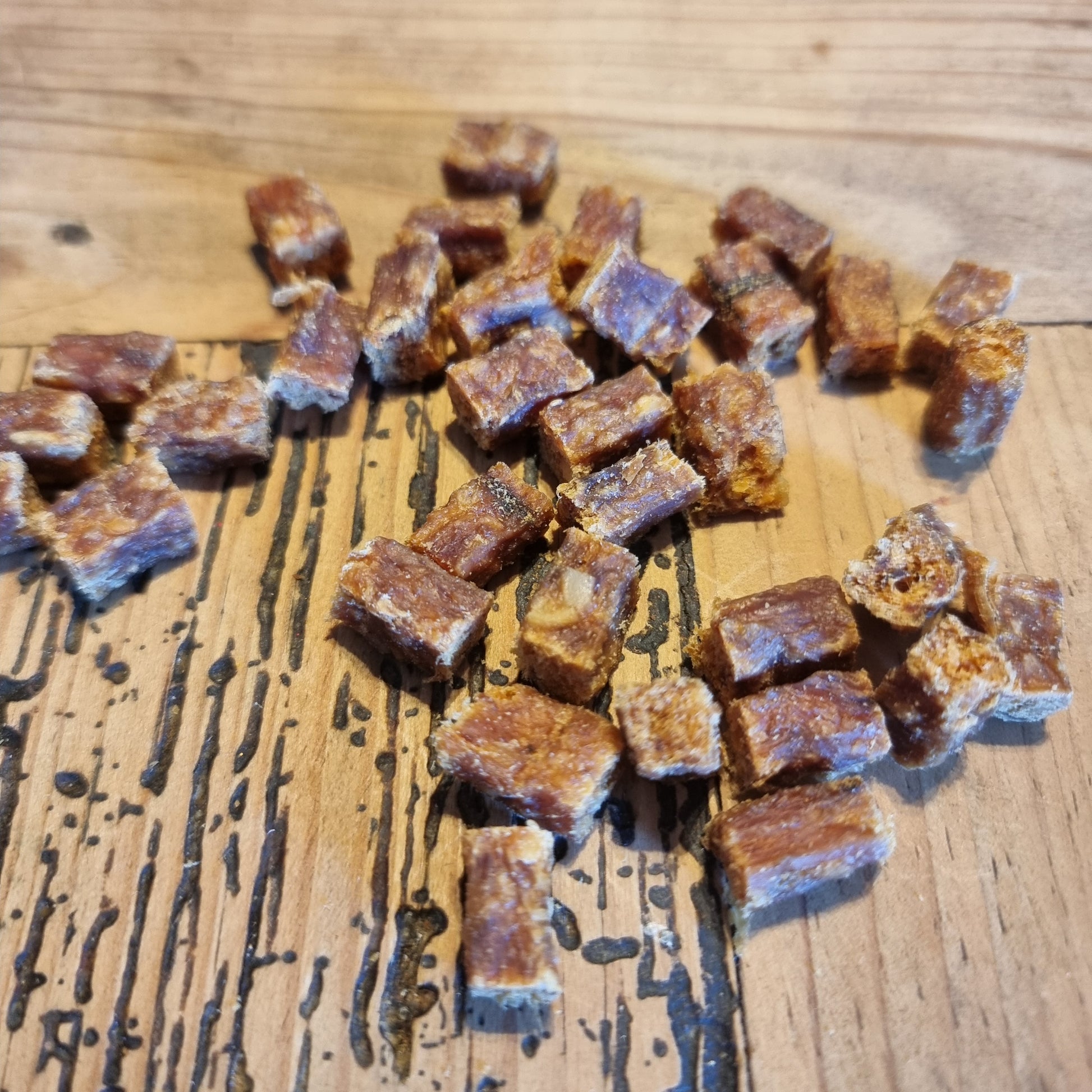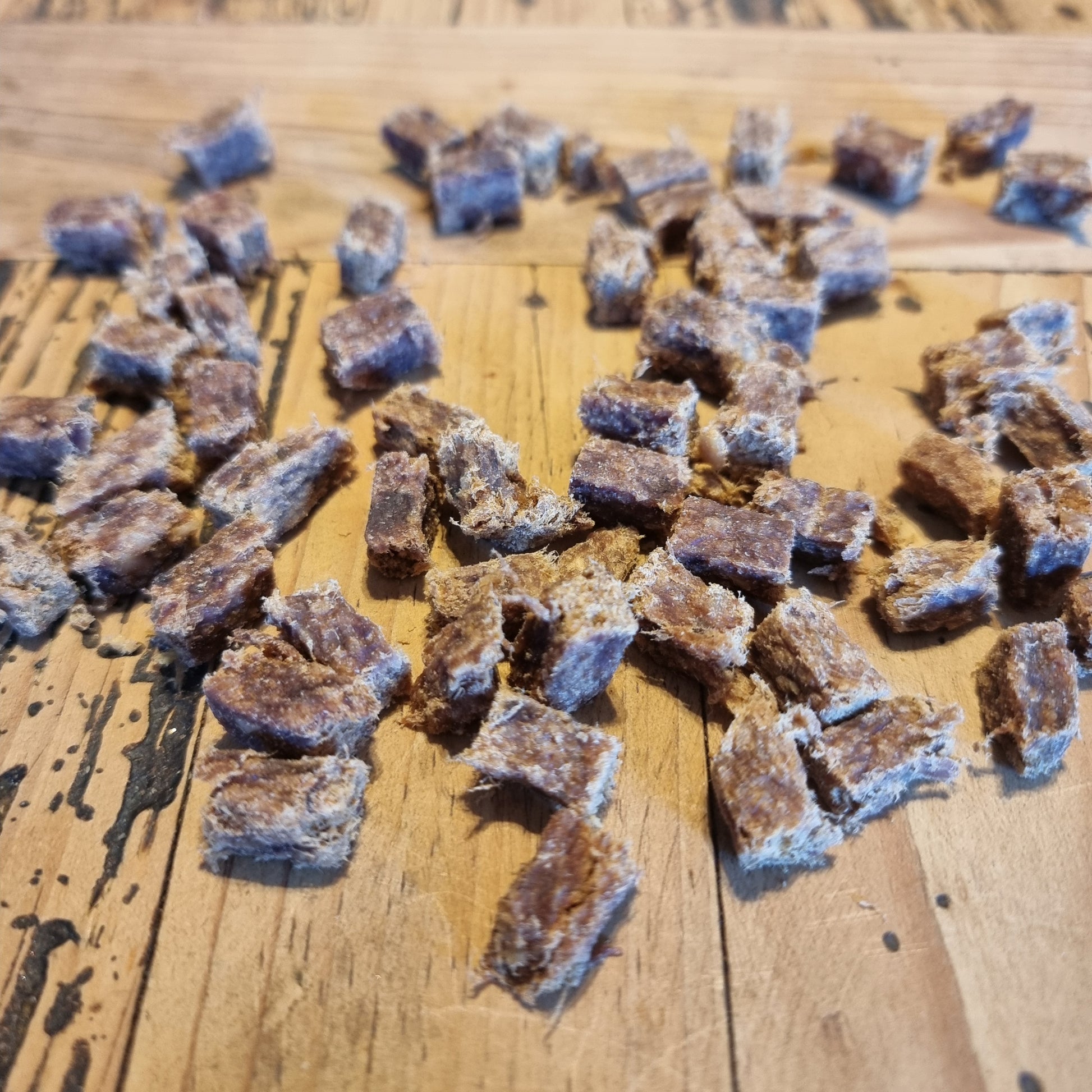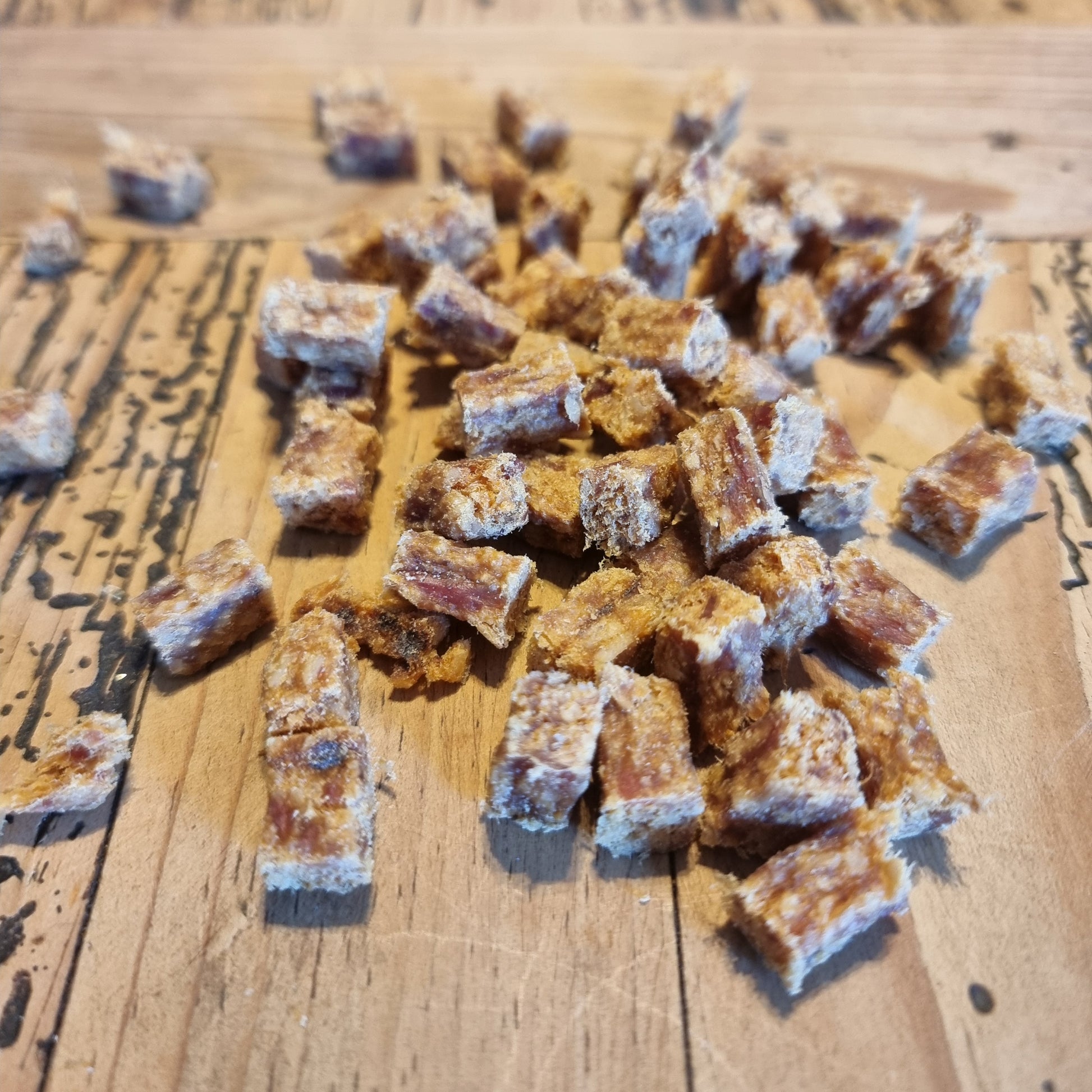 Our 100% Meat Training Treats are delicious are ideal for puppies and adult dogs! Made with 100% single source protein, grain free, and containing no additives or preservatives, these treats perfect for dogs of all breeds and sizes, they’re also great for dogs with allergies, digestive issues or a sensitive stomach. They are very high value, making them perfect for training treats to reward good behaviour.