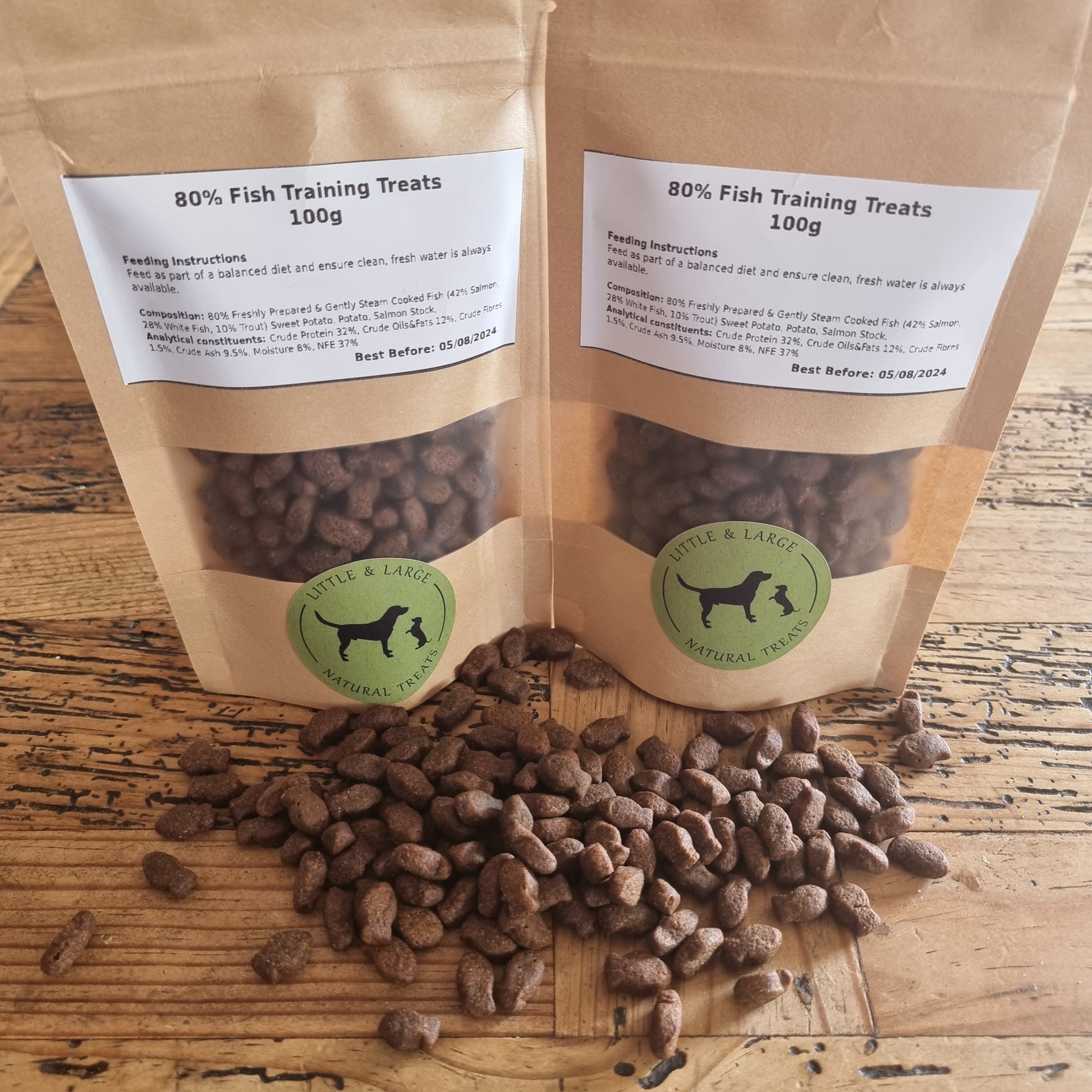 Our 80% Fish Training Treats are the perfect choice for pet owners looking for high-quality, natural rewards for their dogs. These treats are specially formulated to provide a healthy and delicious option for training sessions or everyday rewards.