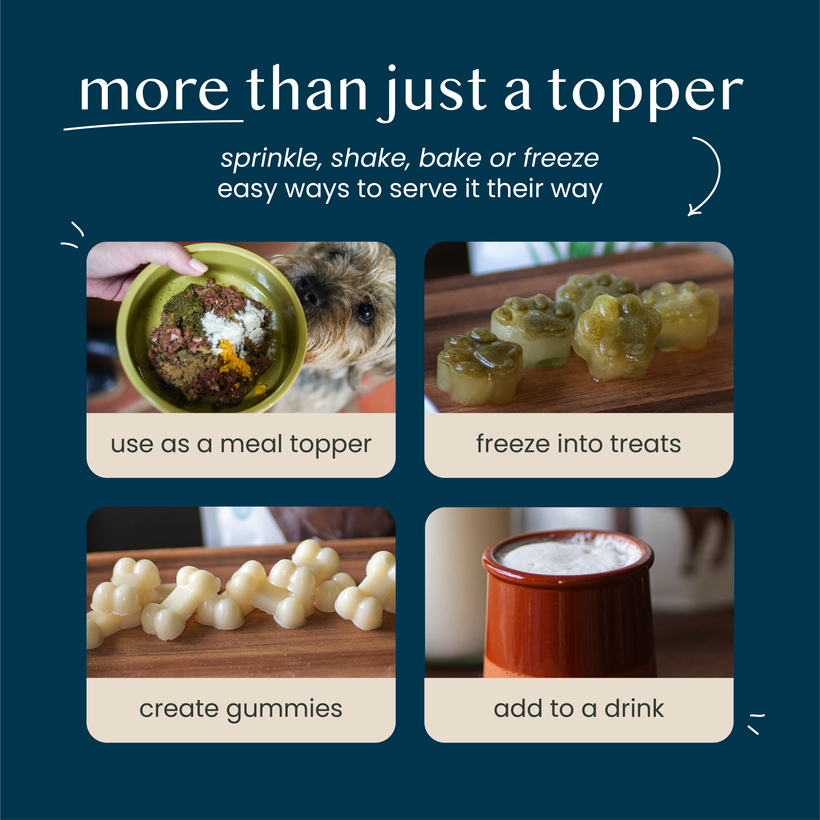 Apply this as a daily topper onto your pets meals. Apply to moistened food.