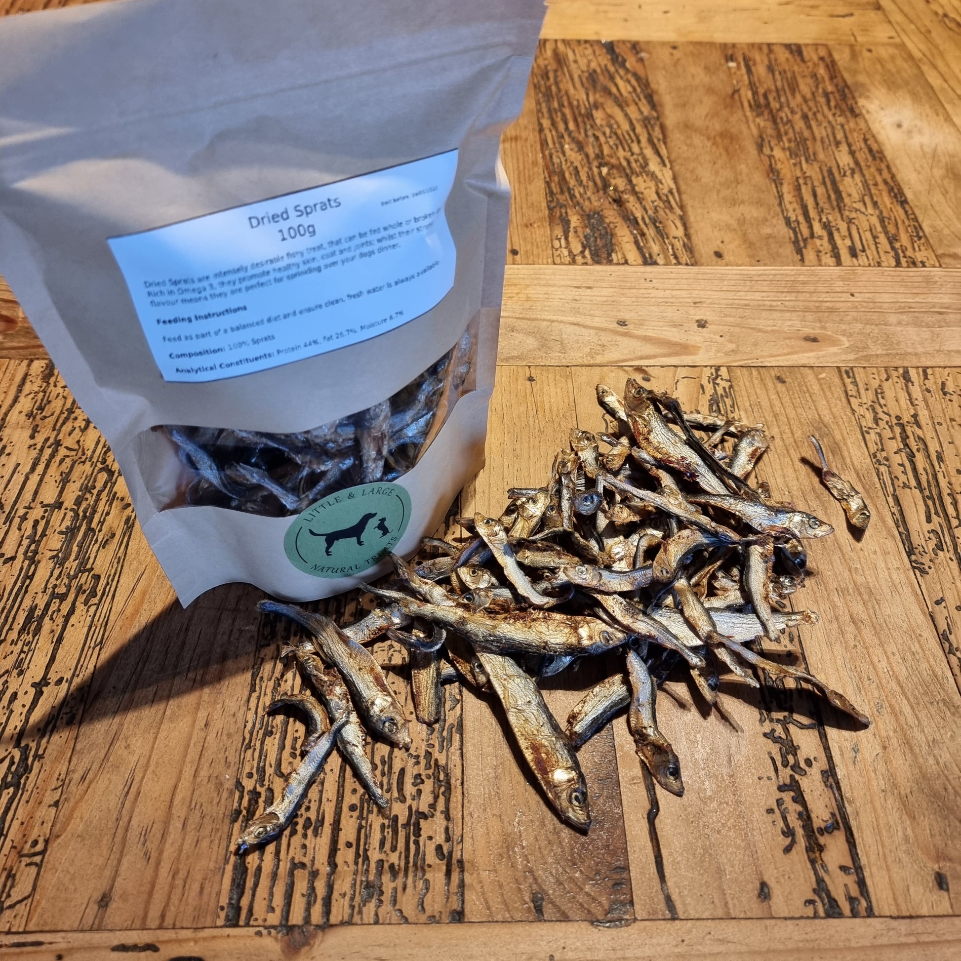Dried Sprats are intensely desirable fishy treat, that can be fed whole or broken up. Rich in Omega 3, they promote healthy skin, coat and joints; whilst their strong flavour means they are perfect for sprinkling over your dogs dinner.