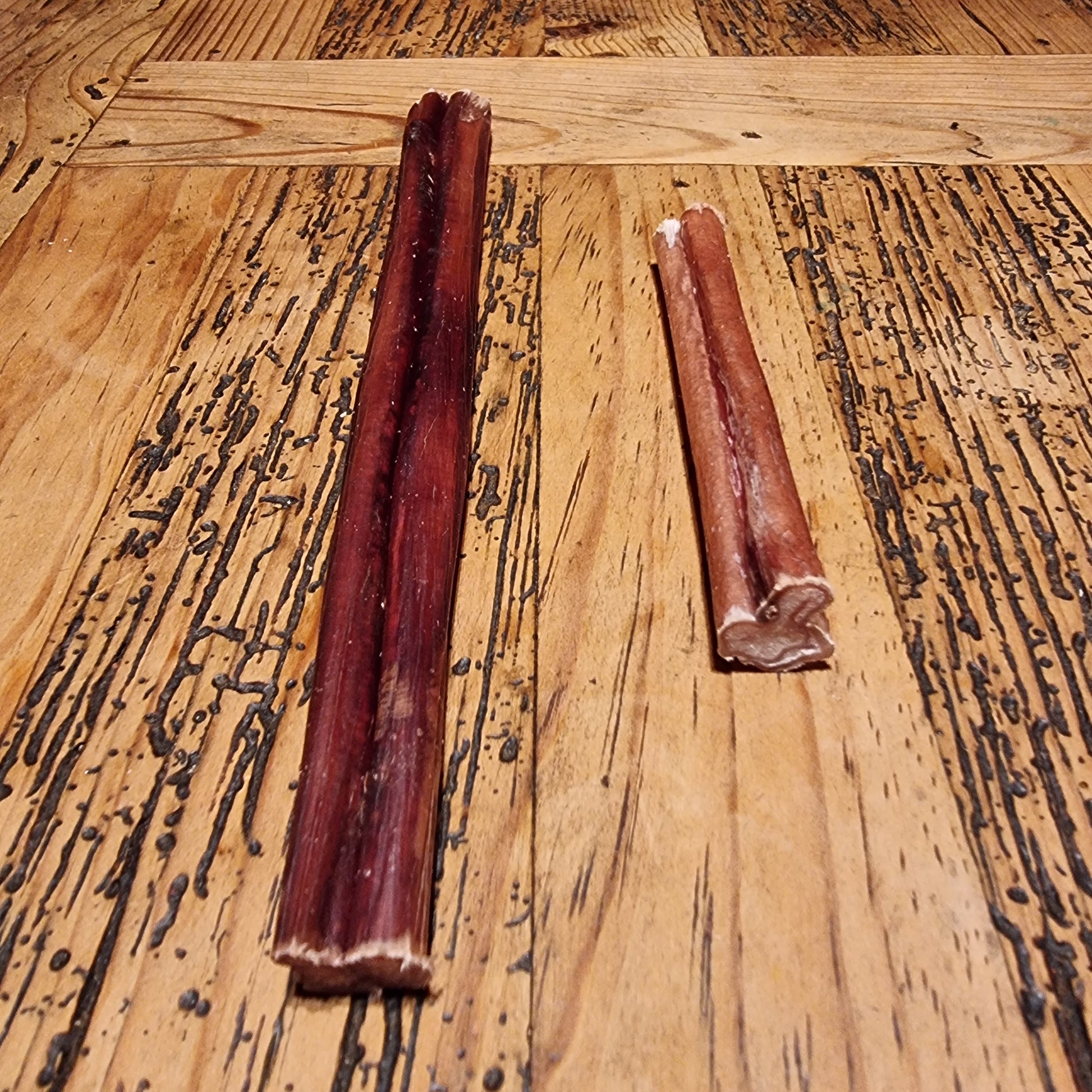 Our 12cm pizzle is great for small to medium sized dogs, and our 24cm pizzle is great for larger breeds, or smaller, tougher chewers.