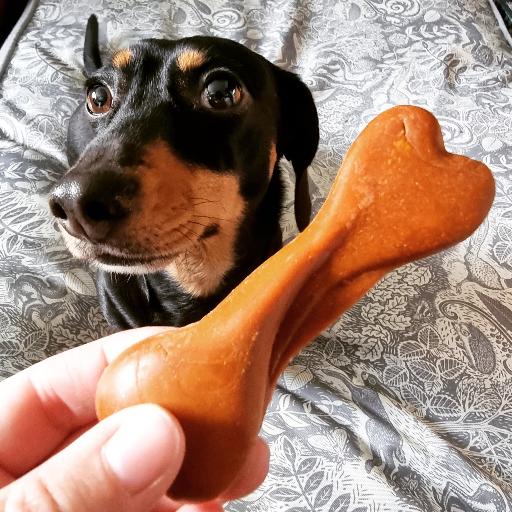 Pumpkin & Carrot, a great combination that dogs find delicious. They are 100% natural and meat-free, and they smell amazing!