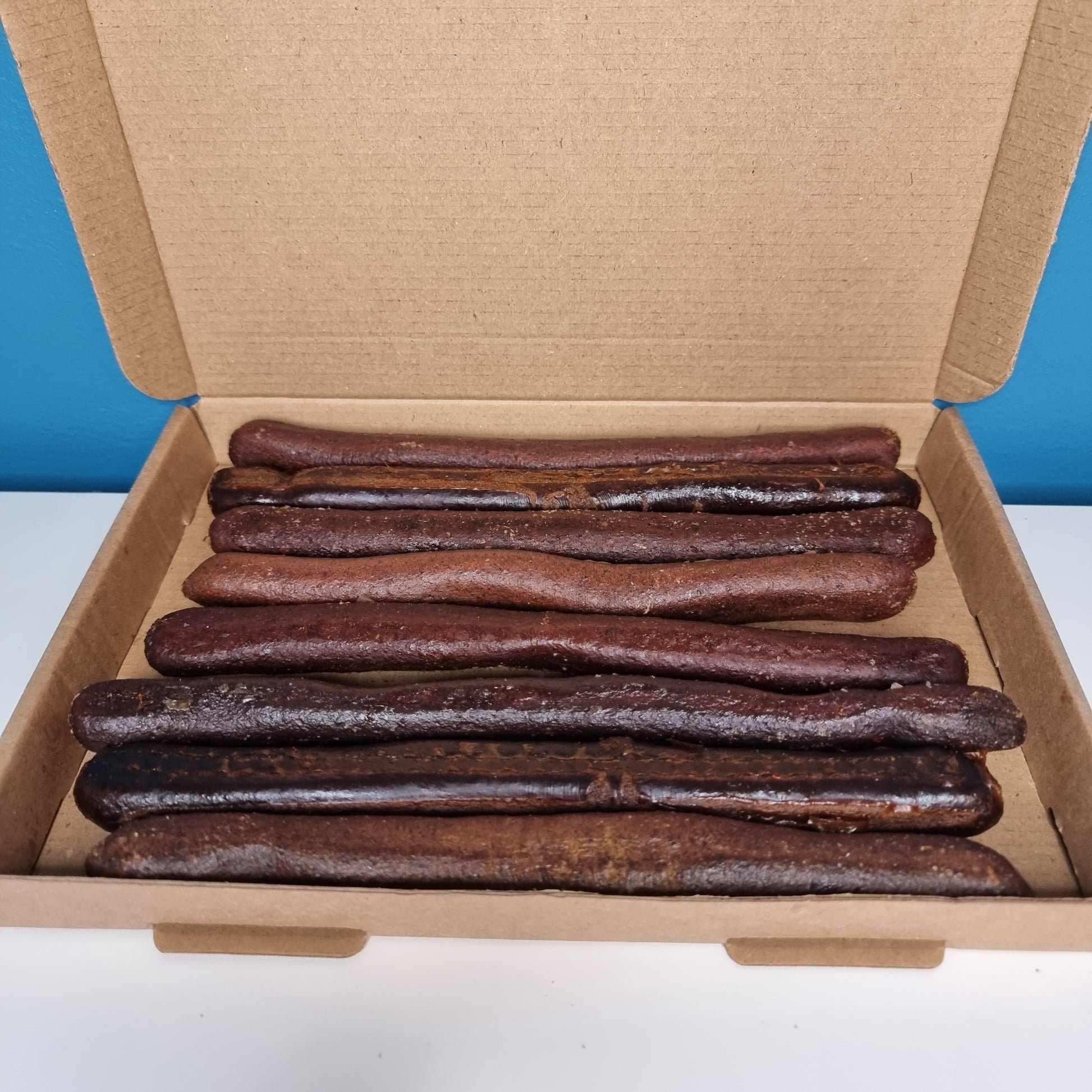 A selection of our gourmet meat sticks. They are perfect whole as a treat, or broken up to use for training. Can also be used for various enrichment activities, and as a topper.